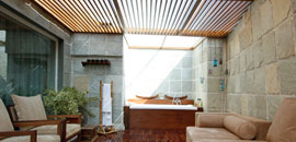 Surrender your heart to Mountain Springs, an innovative art home that gives luxury a new life. Crafted from natural stones and exotic woods, Mountain Springs captures the essence of an antique Greek world and blends it with all the comforts modern living has to offer. It’s the place magic rendezvous with nature for an unforgettable experience. ![]() The GardenThe first rush of your world comes as you walk through the sturdy yet stylish gates layered with Burma Teak. As you take your first steps towards the house, Australian grass captures the outdoors in a blanket of green, welcoming you into the lap of comfort. Enjoy the experience as flowers line both sides of the walk, leading you to spend some precious time at the outdoor seating. ![]() The LoungesSpend hours with your thoughts or in the company of people in these plush yet comfortable spaces. The lower lounge connects the main door to the spa room and doubles up as a warm transit zone for those entering and leaving the home. Let your mind wander as you settle into the upper lounge spruced with hues of burnt orange and hot pink. Designed for long hours of relaxation, this room gives you a direct view of the infinity pool and the waterfall. A painting "The Butterfly Man" by renowned artist Prakash Ghadge adorns the wall and takes centre stage while reigning harmoniously with the elegant rectangular chandelier. ![]() The Spa RoomLet your weary mind and body unwind here. A personal Jacuzzi and massage table accompanied by a hot stone massage kit prepares you for a relaxing session. The spa opens into a bedroom that comes alive in white, creating the perfect canvass for your free mind. We know you'll enjoy your privacy as much as the white leaf engraved floor mirror and the coordinated classic four-post bed. ![]() The Pool SideStep on to the wooden deck, only to be greeted by a 60 - foot high sliding waterfall. Let the sounds of water and the gentle spray put you at ease as you step into your private infinity pool. Not in the mood for a swim? Then just lounge in a chair and let the tinkling of wind chimes calm your soul. ![]() The Kitchen and Dining AreaFood for your soul, this modular kitchen is designed to make cooking as enjoyable as meal times. Dine in crockery and cutlery born from 100% Kansa, an alloy of copper and tin that in Ayurveda is believed to retain the nutritional value of food. ![]() Open air JacuzziSip on a glass of wine as you slip into a relaxed afternoon. A wooden roof looms over the open air Jacuzzi, allowing natural light to enter. Soak in the ambience as you soak in a comfortable bath. ![]() Sky BedroomLie under the stars in style. A King size bed donned with cushions unfurls on the terrace letting you enjoy the beauty of the night. Did you ever imagine sleep time could be this luxurious? ![]() Master BedroomEscape to a hidden world in the master bedroom. A door separates this space from the rest of the house and along with the private elevator, creates the illusion of an enclosure. Lean out on the balcony and enjoy a top view of the waterfall and the pool or take the flight of stairs that leads up to the open air Jacuzzi and the sky bedroom, for a different adventure. ![]() The Guest BedroomInvite your friends and family to taste the life you chose. A turquoise and brown theme speckled with orange brings a wave of color to the sobriety. This room comes with an attached bath and a balcony, letting your guest enjoy an unforgettable stay. ![]() FurnitureTraditional skills of hand carving come alive in the furniture, with Box, a unique range of furniture from Good Earth, the premium lifestyle store. Made from Hardwood Mahogany, this collection is sturdy and resistant to termites, while looking strikingly stylish. ![]() Walls and FlooringRun your fingers on the walls as you sail from room to room. Enjoy the touch and beauty of a natural finish, with stones procured from every corner of the country - Old Gold Stone from Rajasthan, Giblic Granite, Handcrafted Gangapur groove stone, Himachal brown Stone and Mint Stone. ![]() GymStay in shape at your personal gym equipped with all the facilities you need to keep your body and mind in good health. ![]() ElevatorEnjoy a run up the steps or if that's too much for you then just take the elevator. A private lift starts at the ground floor and opens straight into the master bedroom. ![]() Sanitary WareThe bathrooms are fitted with premium fittings from Kohler. So you can be assured of nothing less than the finest experience. ![]() Other FringesYour comfort and safety has been taken into consideration while designing this house. The house is fitted with CCTV cameras, intercom phones, generators, invertors, a water filtration plant, air conditioners, home theatre systems, satellite cable and the works. Pest control has also been carried out. ![]() Vibes and Positive EnergyGet enveloped in prosperity and happiness as principles of Vastu Shastra and Feng Shui display themselves throughout the house. Metal wind chimes, laughing Buddha's, strategically placed crystals, artistically placed mirrors and energy enhancement pyramids draw in positive energy and attract peace and stability into this home. ![]() |